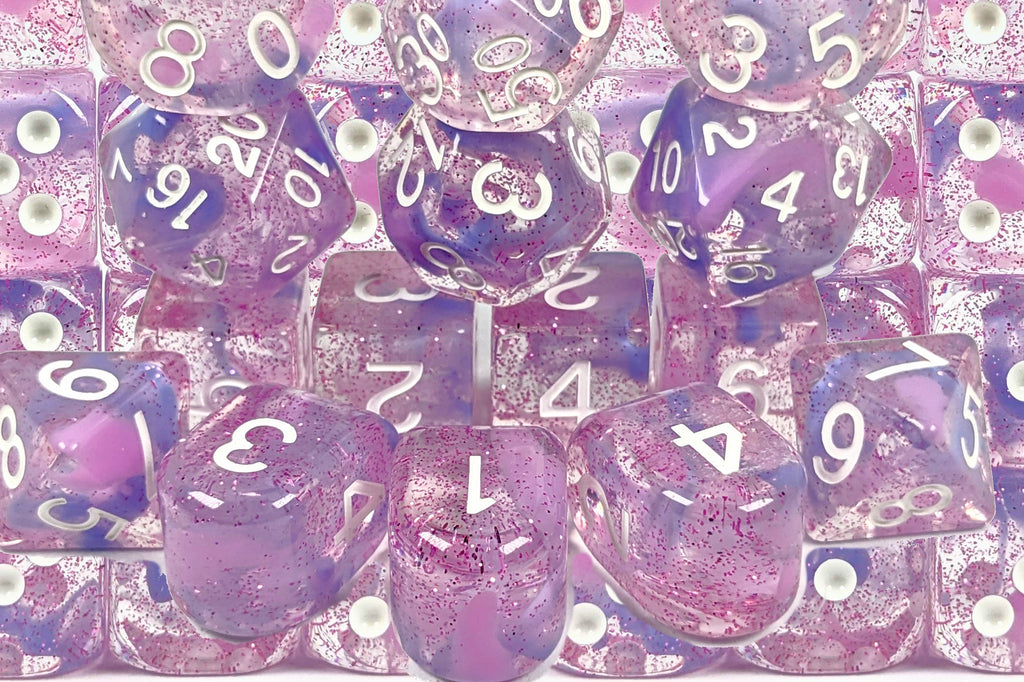 Pink dice twirl like cotton candy clouds, infusing the game with a burst of whimsy and joy. As they pirouette, the playful hues create an atmosphere of lighthearted adventure. Rolling these dice becomes a celebration, a moment to revel in the camaraderie of the gaming table. The color's warmth and charm enhance the emotional bonds between characters, turning every roll into a shared experience.