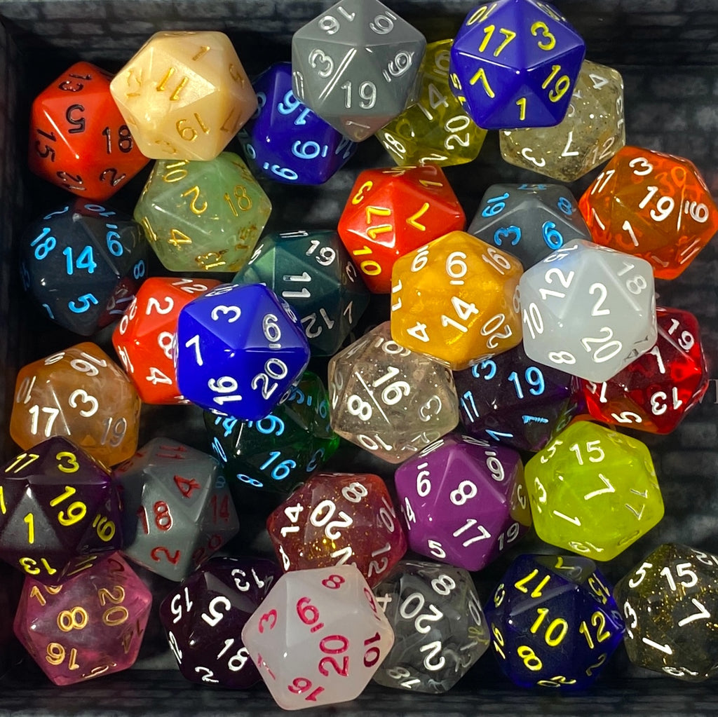 Our bulk dice packs are a great way to quickly level up your dice game. Photos show examples of what you may randomly get in your pack.