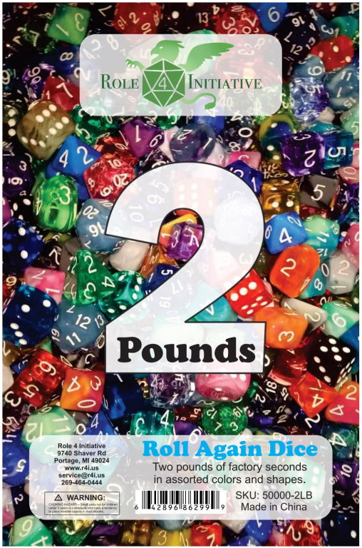 All the dice in these Role 4 Initiative bulk packs are combination of factory seconds, devoid of any significant physical flaws or damages, and factory firsts from our leftover production runs or prototypes. Some may not have met our rigorous quality check for the correct blend of Diffusion colors due to the unpredictable nature of the process. Others might have minor inking imperfections. However, all dice included in these bulk packages are assured to be devoid of physical flaws that could influence the results of the rolls.