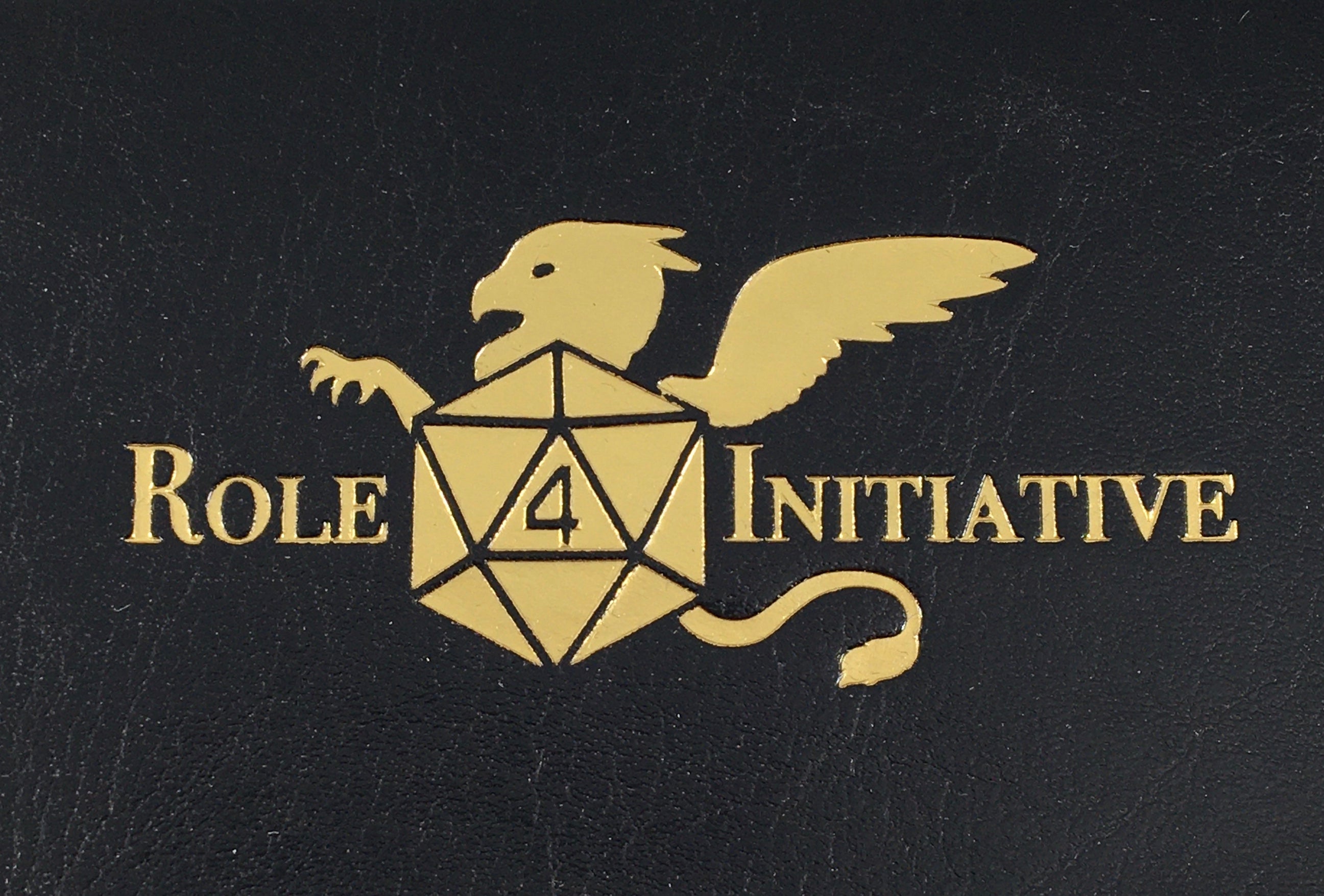 Role 4 Initiative's dice box / rolling tray features a leather look exterior with soft felt interior. Three separate compartments hold up to 30 dice and/or 3 minis. Gold foil logos on both interior and exterior give it a touch of class.