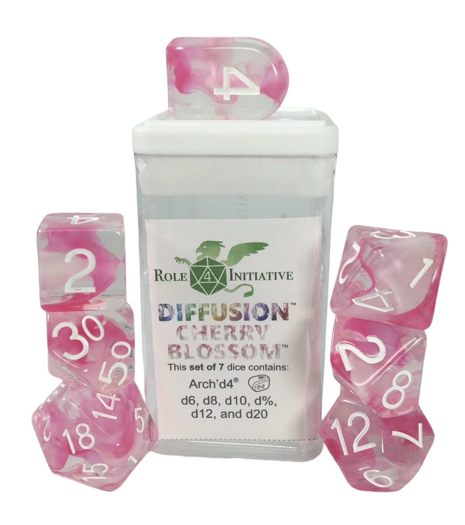 Large High-Visibility Polyhedral Dice: Diffusion Cherry Blossom - pink and white with white numbers