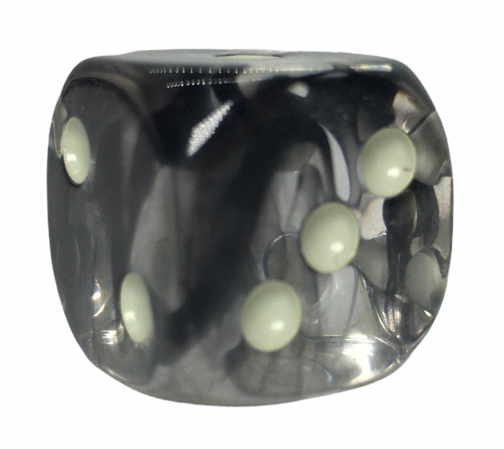 Large high-visibility game dice: Diffusion Lich - diffused black w/ bone numbers