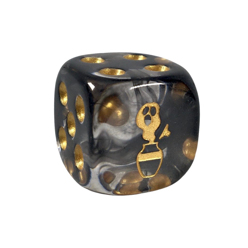 Large High-Visibility Polyhedral Dice: Diffusion Phylactery - diffused black with gold ink