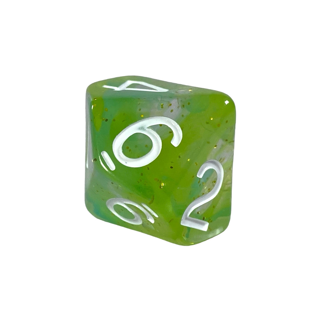 Large high-visibility game dice: Diffusion™ Ranger's Mark - diffused teal and green with gold glitter and white ink