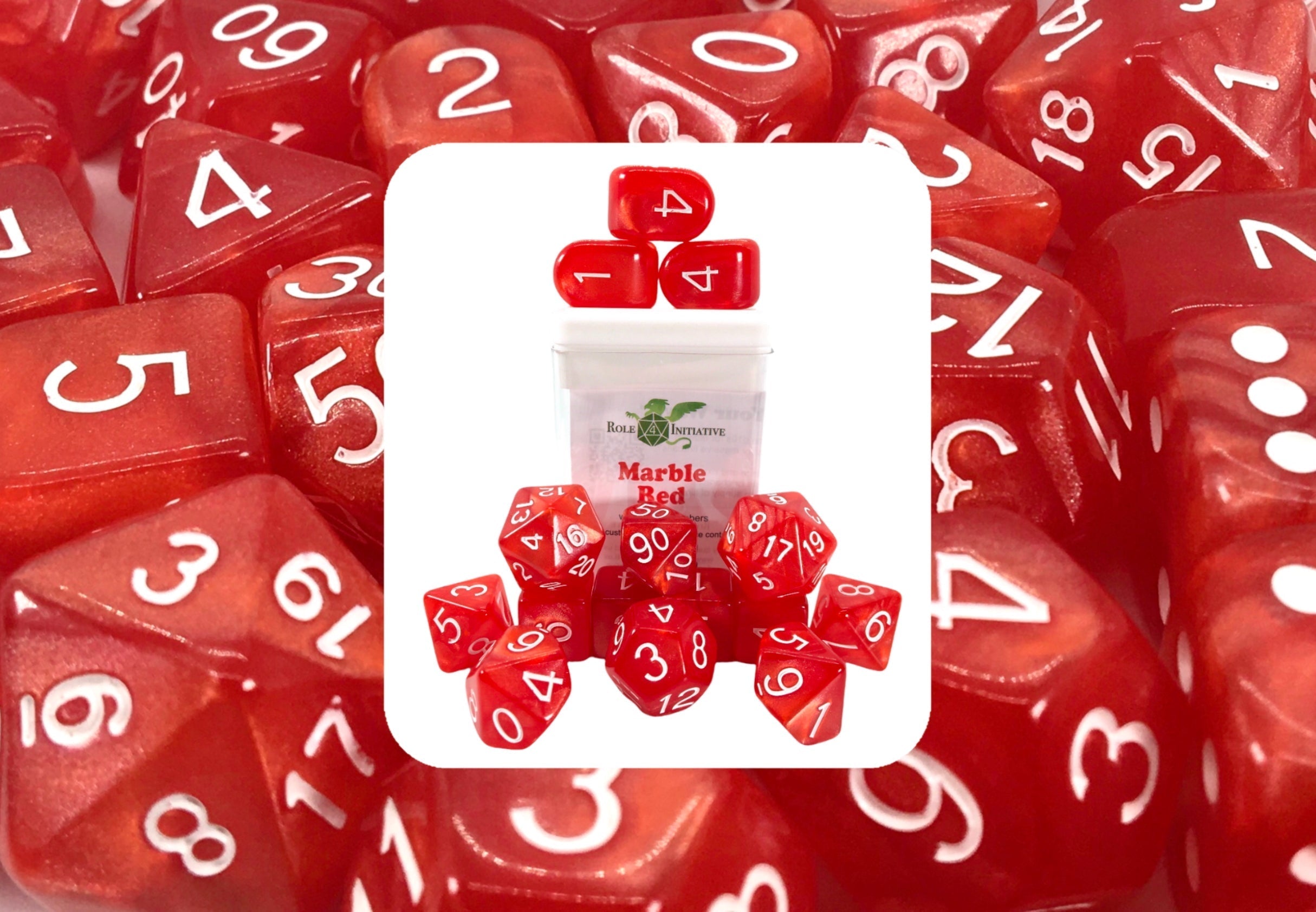 Large High-Visibility Polyhedral Dice: Marble Red Dice - Set of 15 w/ Arch'd4.