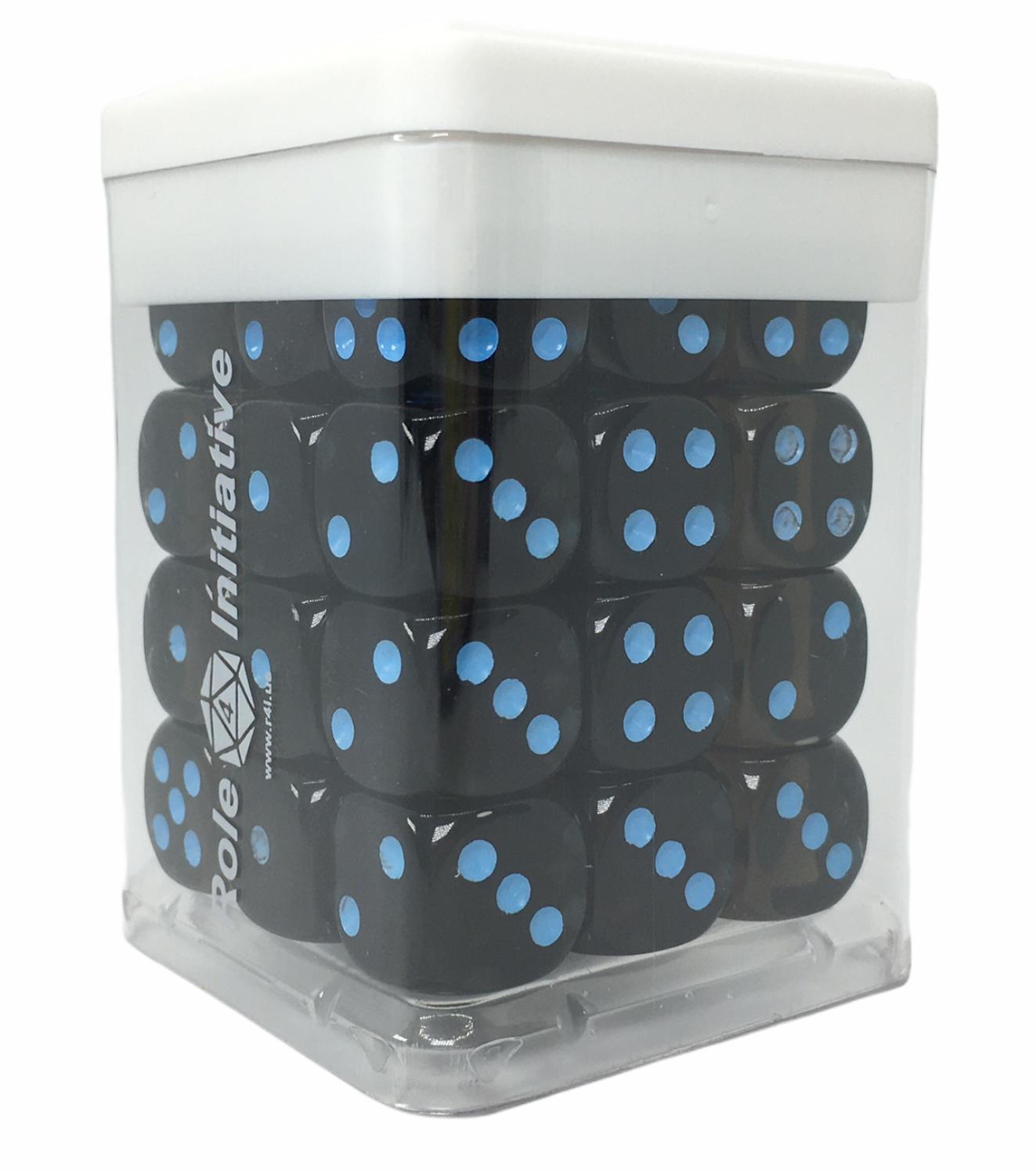 Opaque Black w/ Lt Blue Ink - Set of 36d6 pips 14mm Dice