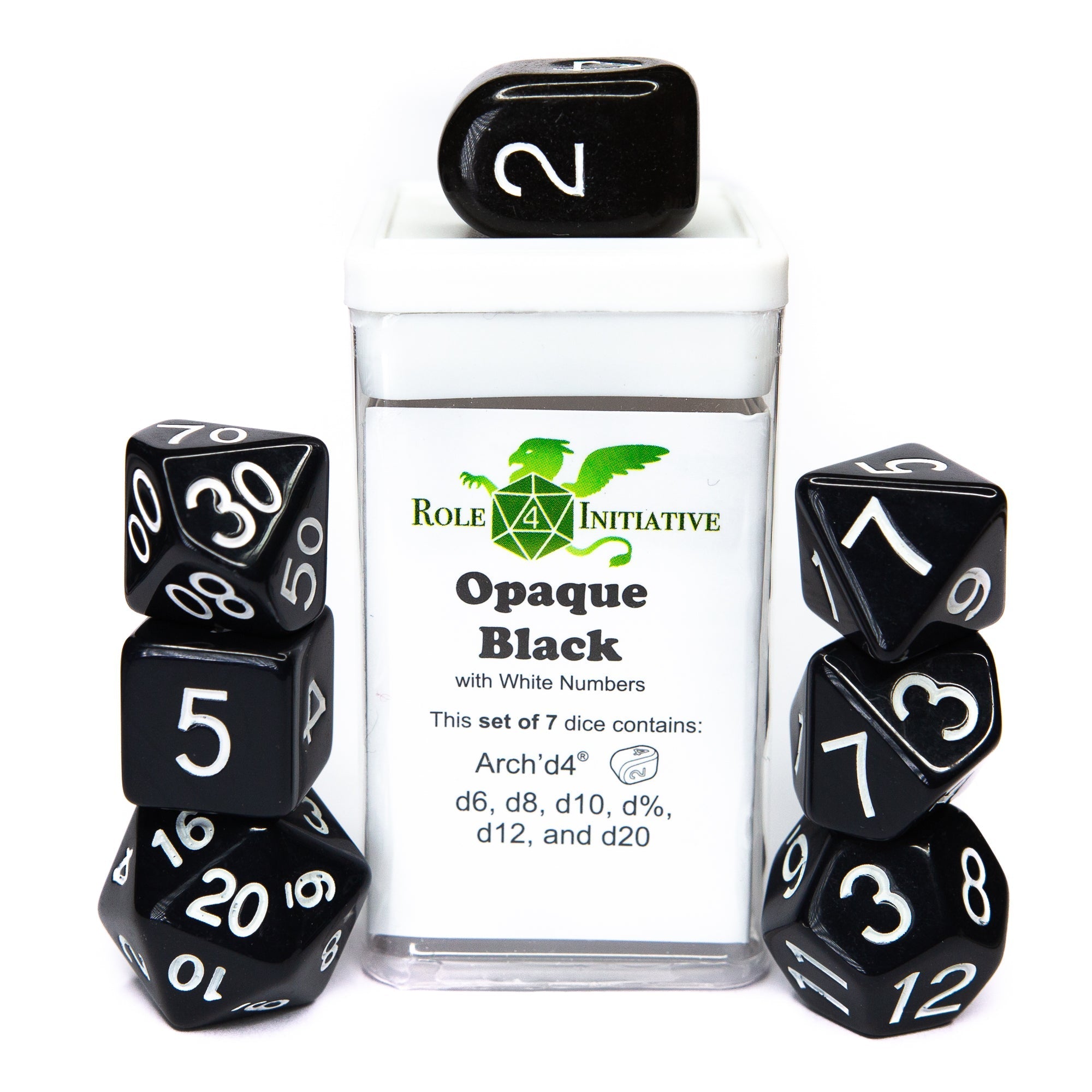 Large High-Visibility Polyhedral Dice: Opaque Black w/ White Numbers