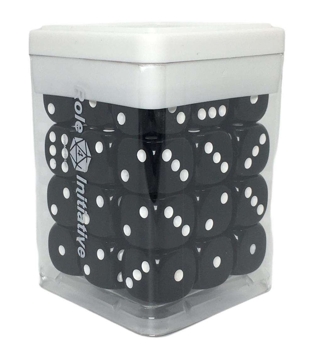 Opaque Black w/ White Ink - Set of 36d6 pips 14mm Dice