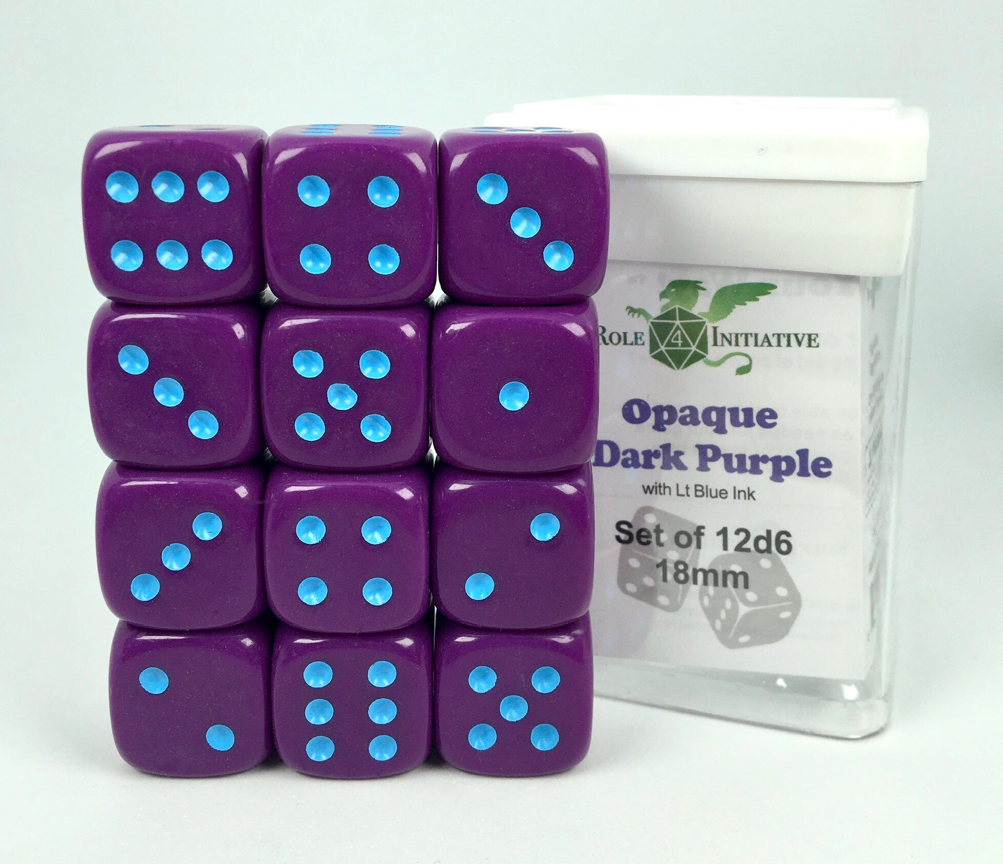 Opaque Dark Purple w/ Lt Blue Ink - Set of 12d6 pips 18mm Dice