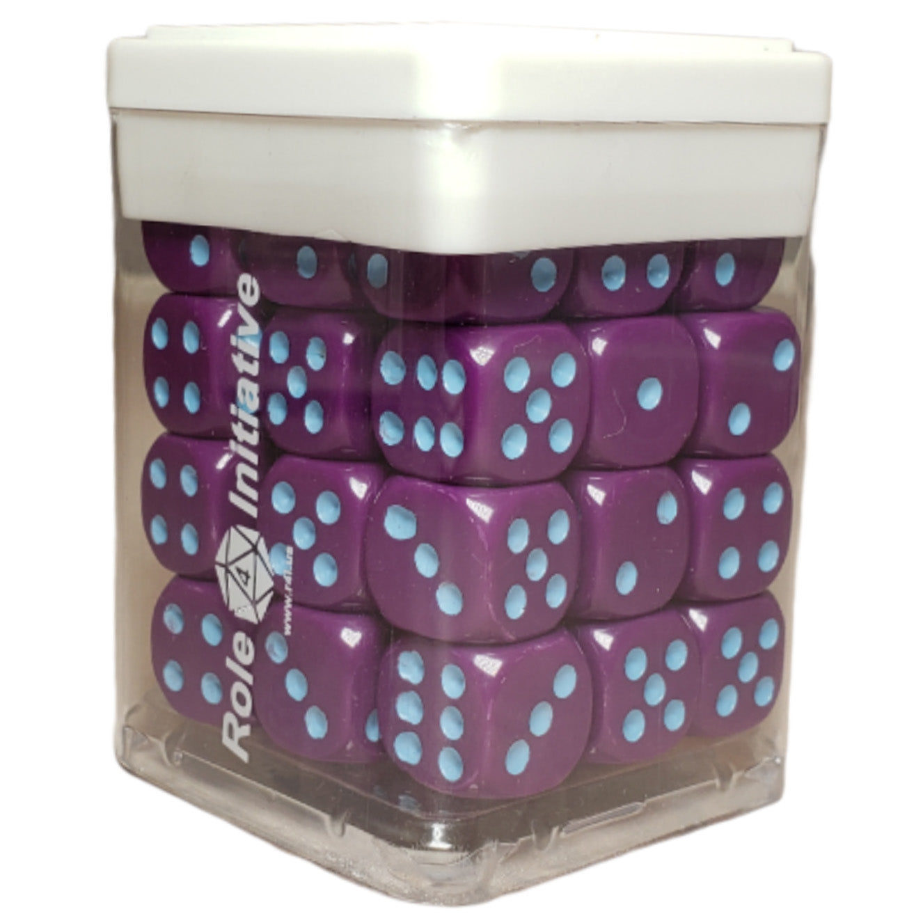 Opaque Dark Purple w/ Lt Blue Ink - Set of 36d6 pips 14mm Dice