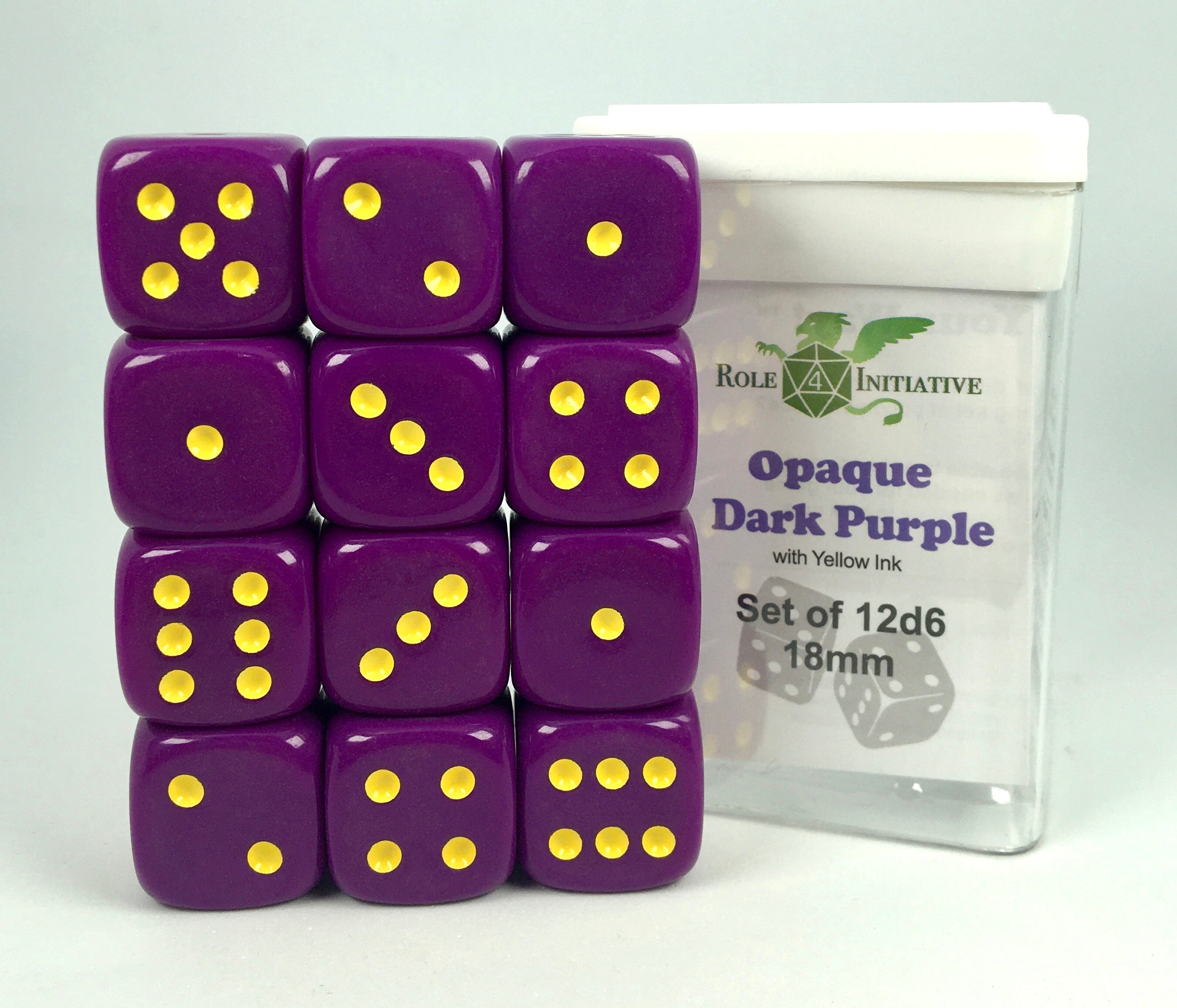 Large High-Visibility Polyhedral Dice: Opaque Dark Purple w/ Yellow Numbers.