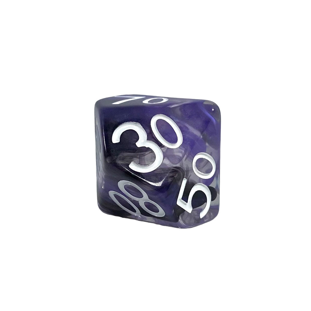 Large High-Visibility Polyhedral Dice: Diffusion™ Rogue's Cunning - diffused purple and black with white numbers