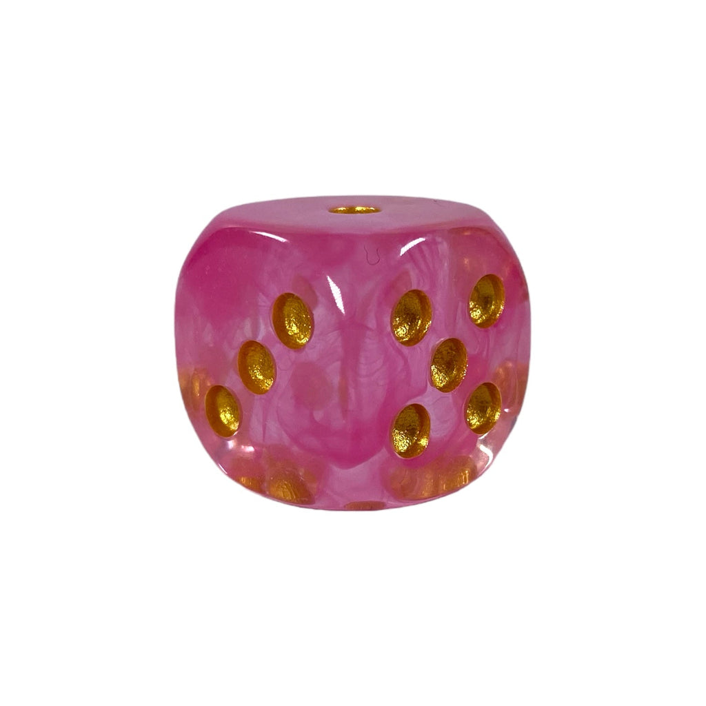Large high-visibility game dice: Diffusion Rose Gold - diffused rosy pink w/ gold numbers