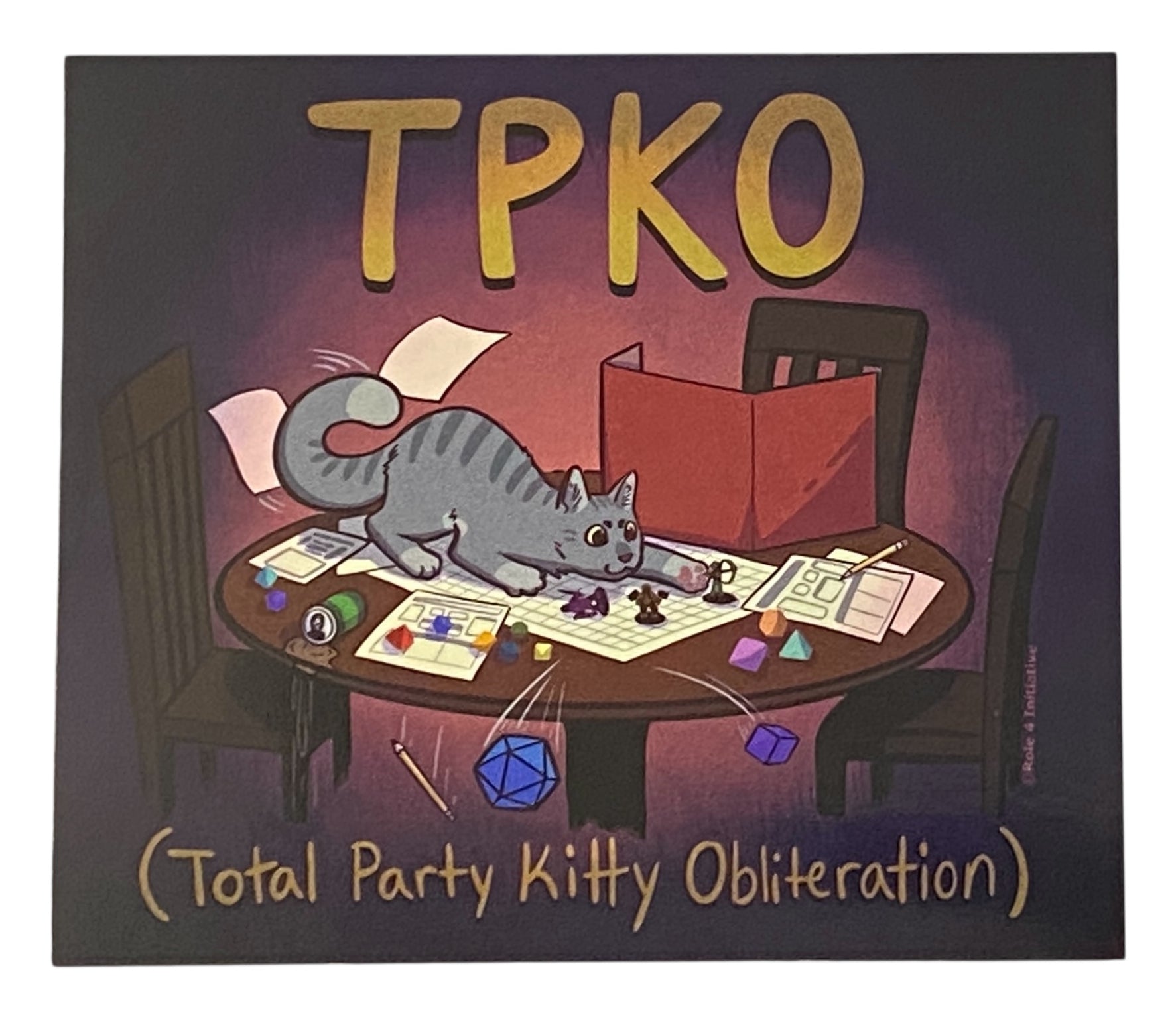 IYKYK. Cats love to join in gaming nights too! The dice and minis are too hard to resist! The "TPKO (Total Party Kitty Obliteration)" sticker measures 3.5" x 3".