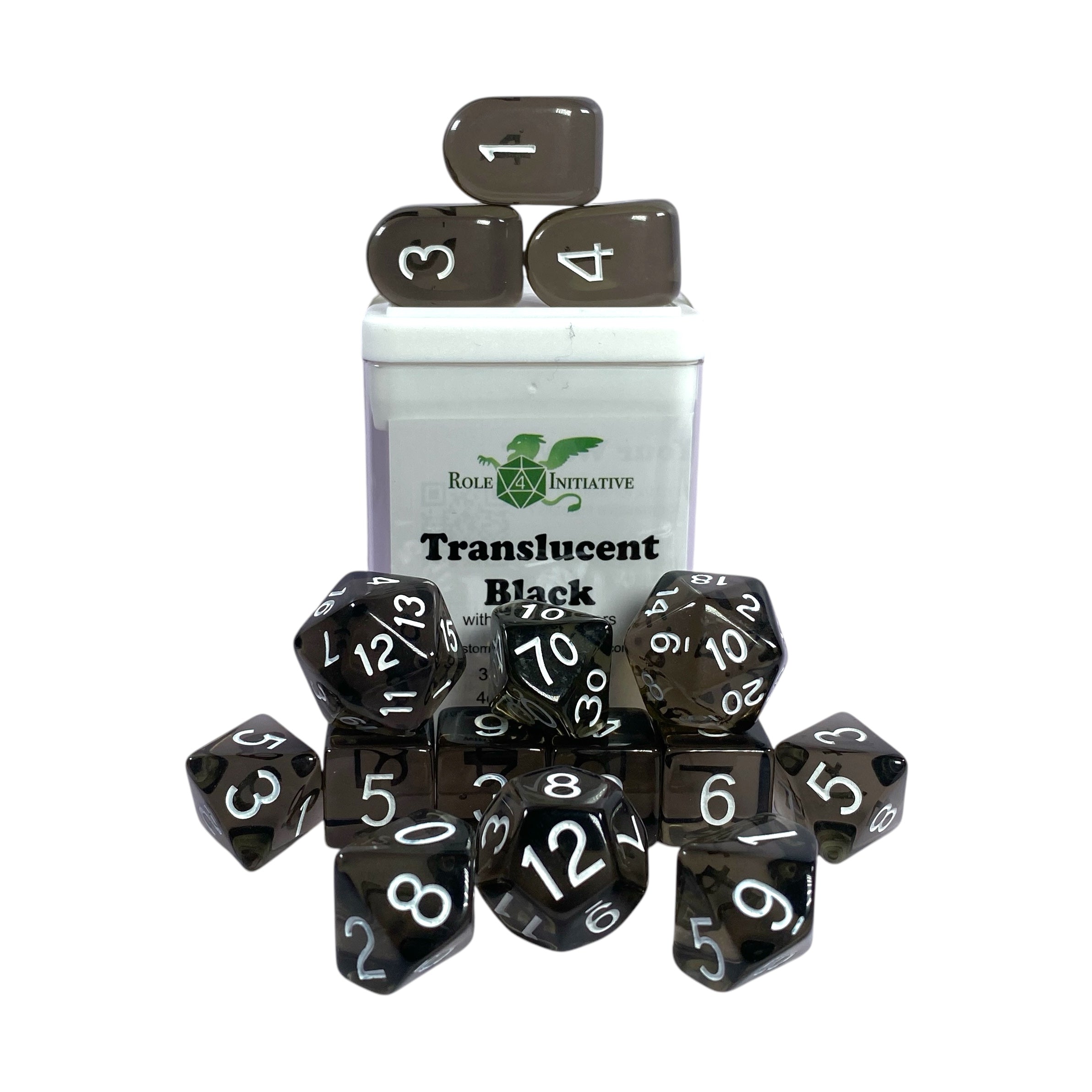 Large High-Visibility Polyhedral Dice: Translucent Black (Smoke) w/ White Numbers