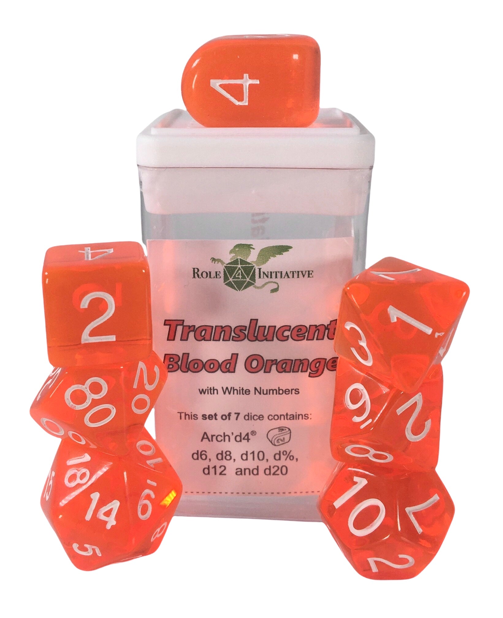 Translucent Blood Orange w/ White Ink - Set of 7 Dice
