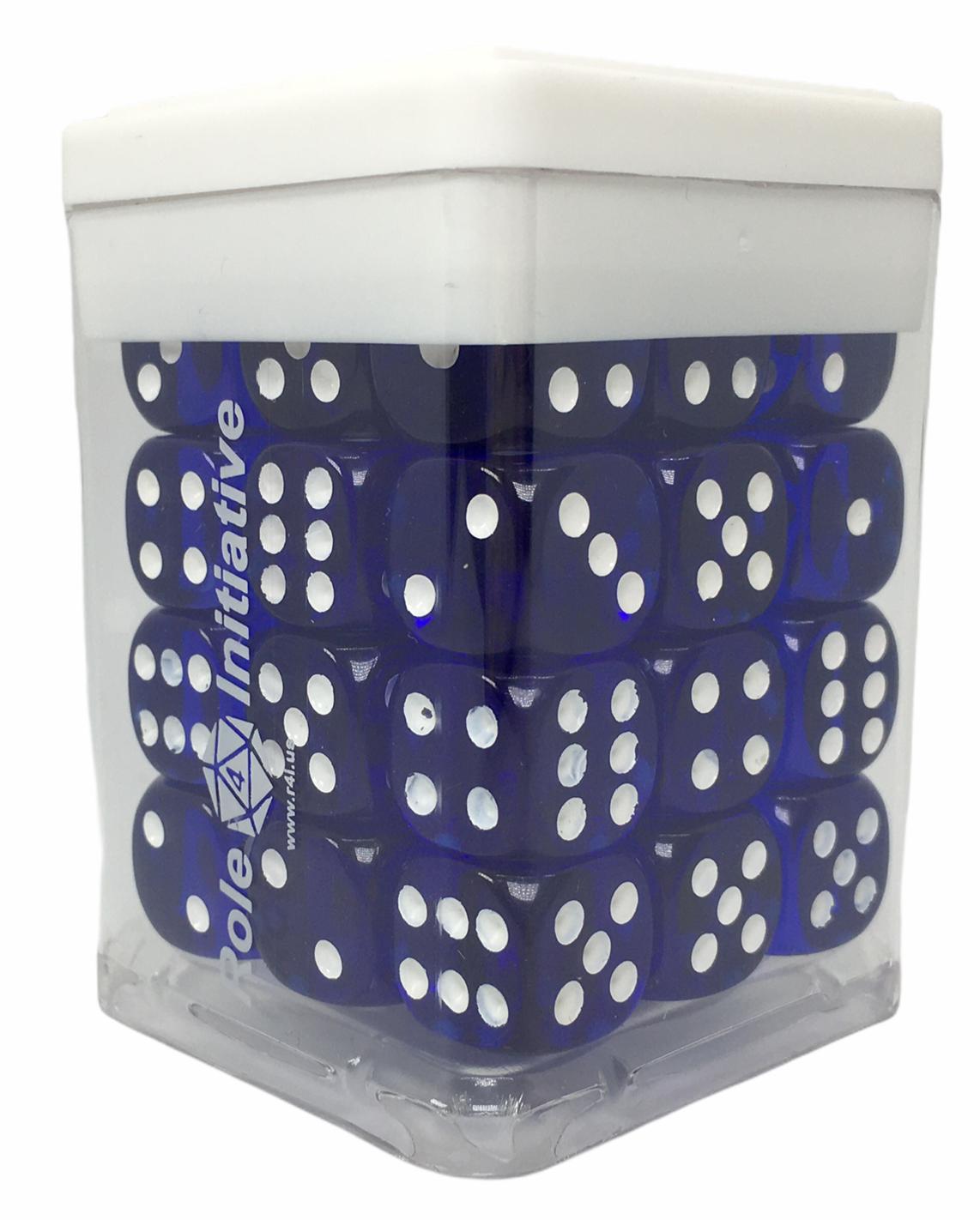 Translucent Dark Blue w/ White Ink - Set of 36d6 pips 14mm Dice