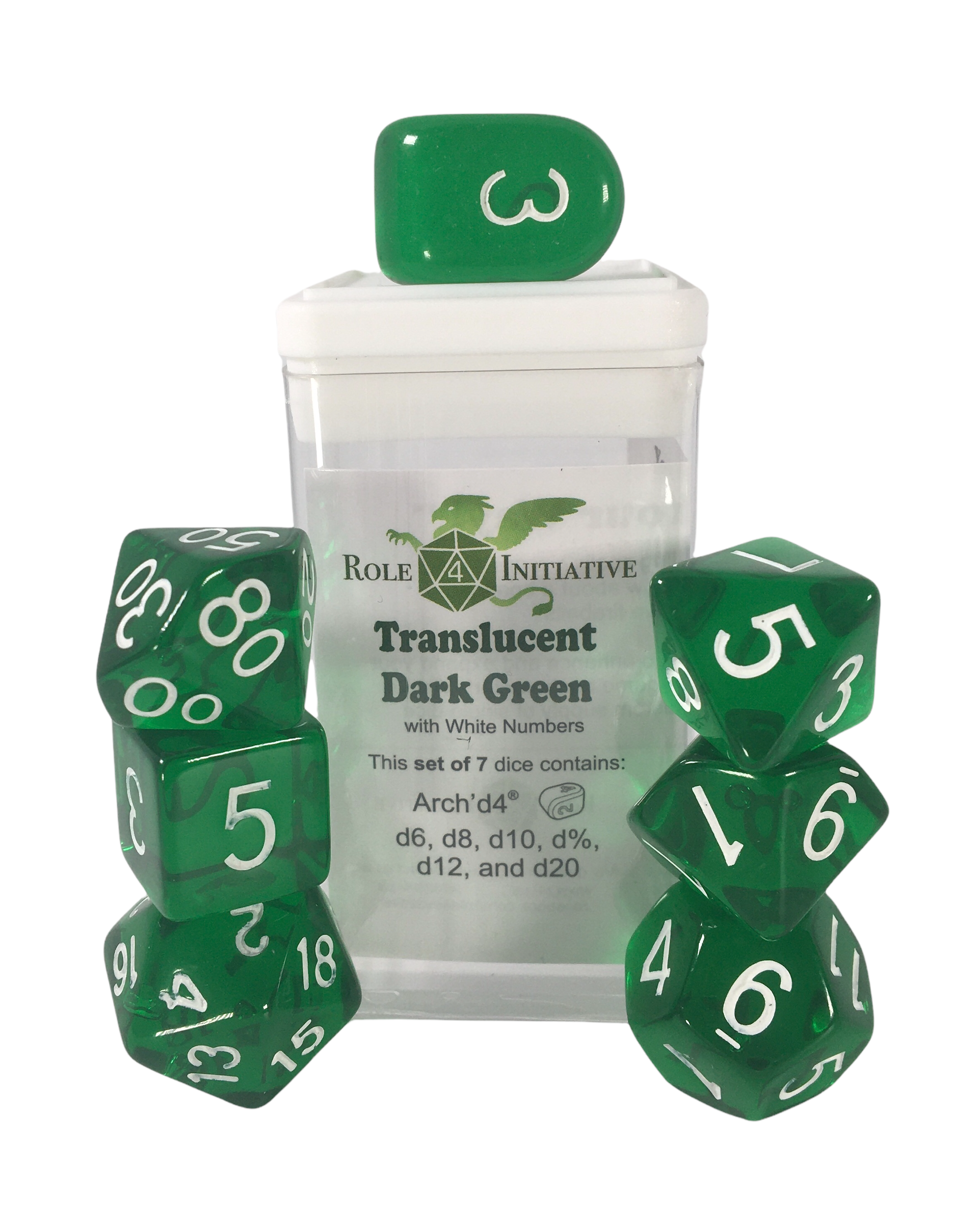 Translucent Dark Green w/ White Ink - Set of 7 Dice