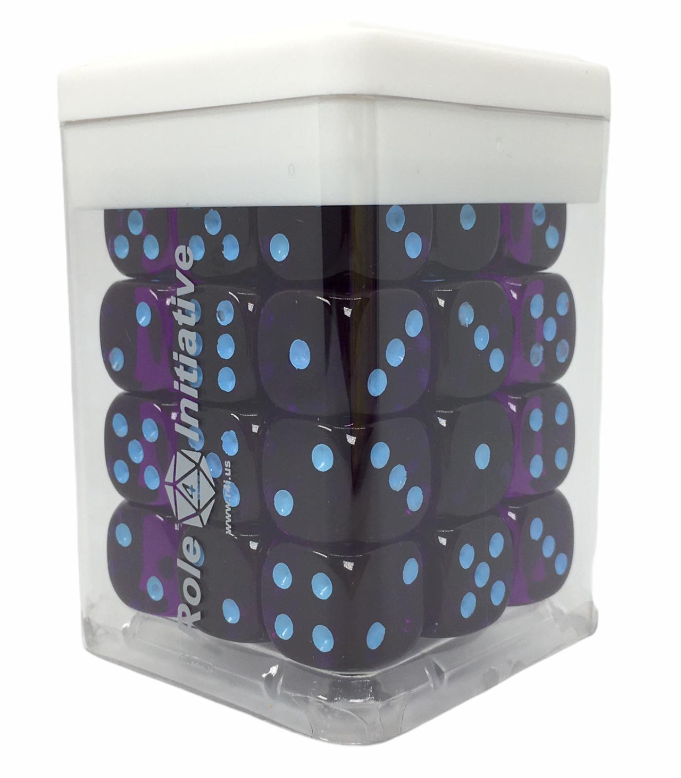 Translucent Dark Purple w/ Lt Blue Ink - Set of 36d6 pips 14mm Dice