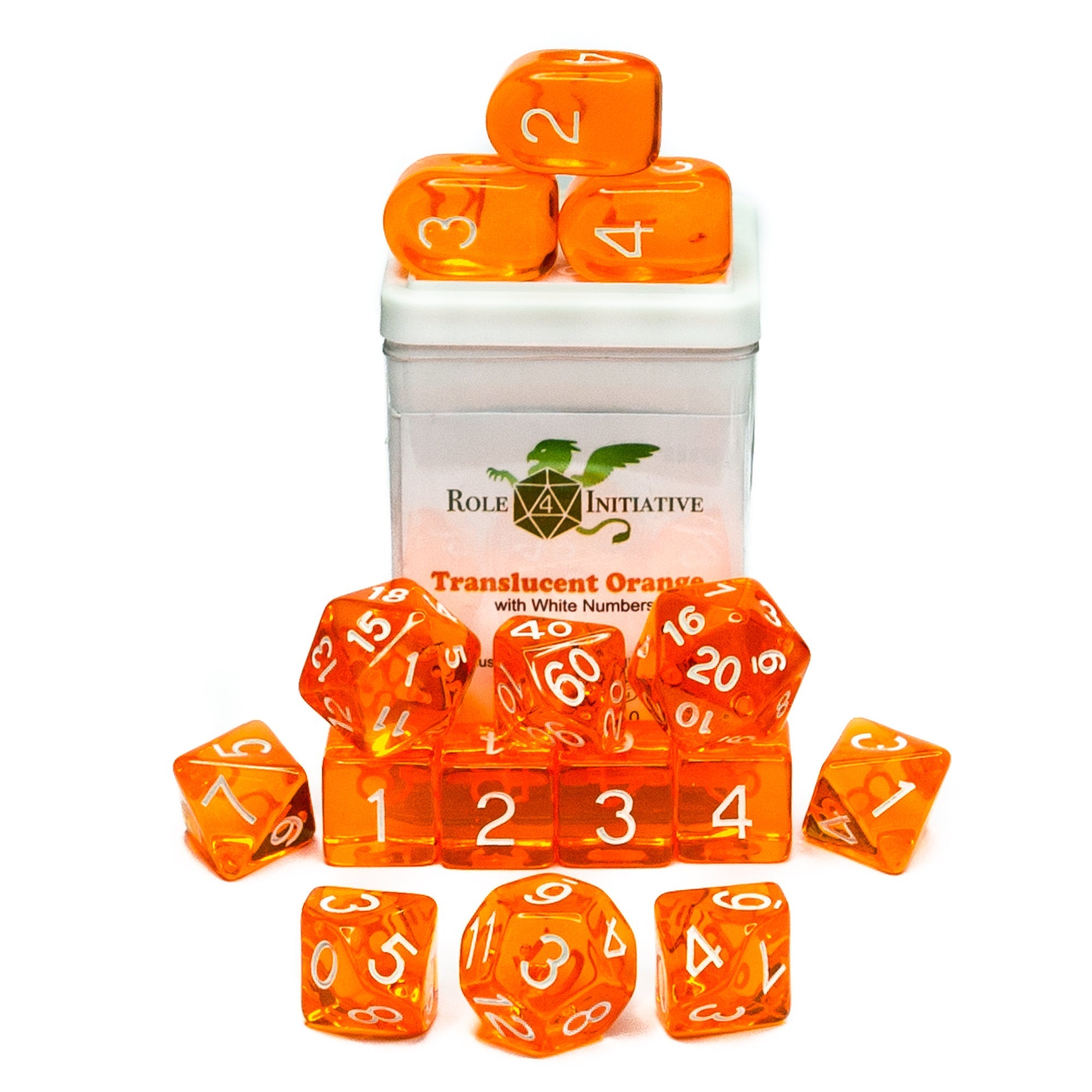 Large High-Visibility Polyhedral Dice: Translucent Orange w/ White Numbers