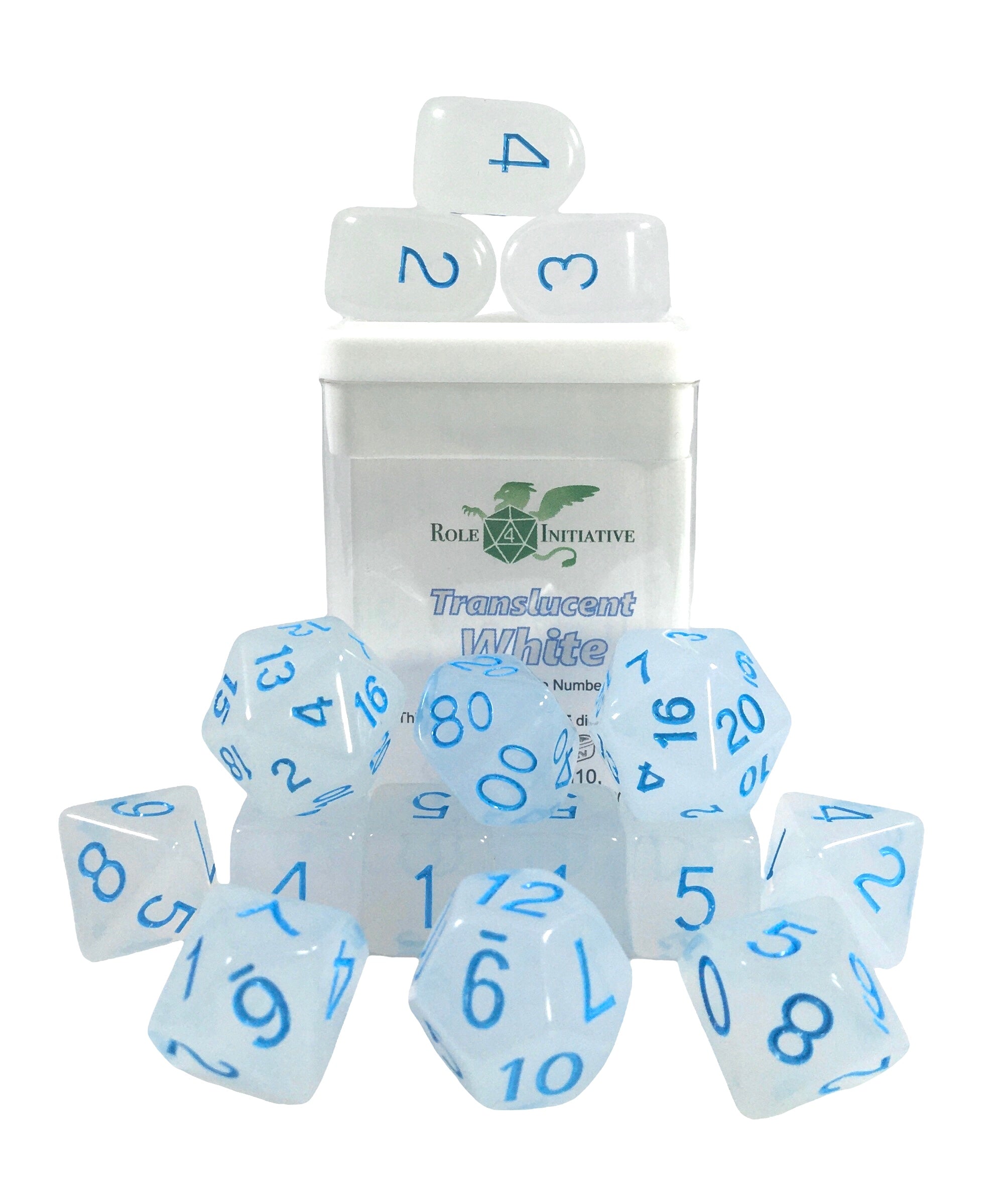 Translucent White w/ Lt Blue Ink - Set of 15 Dice