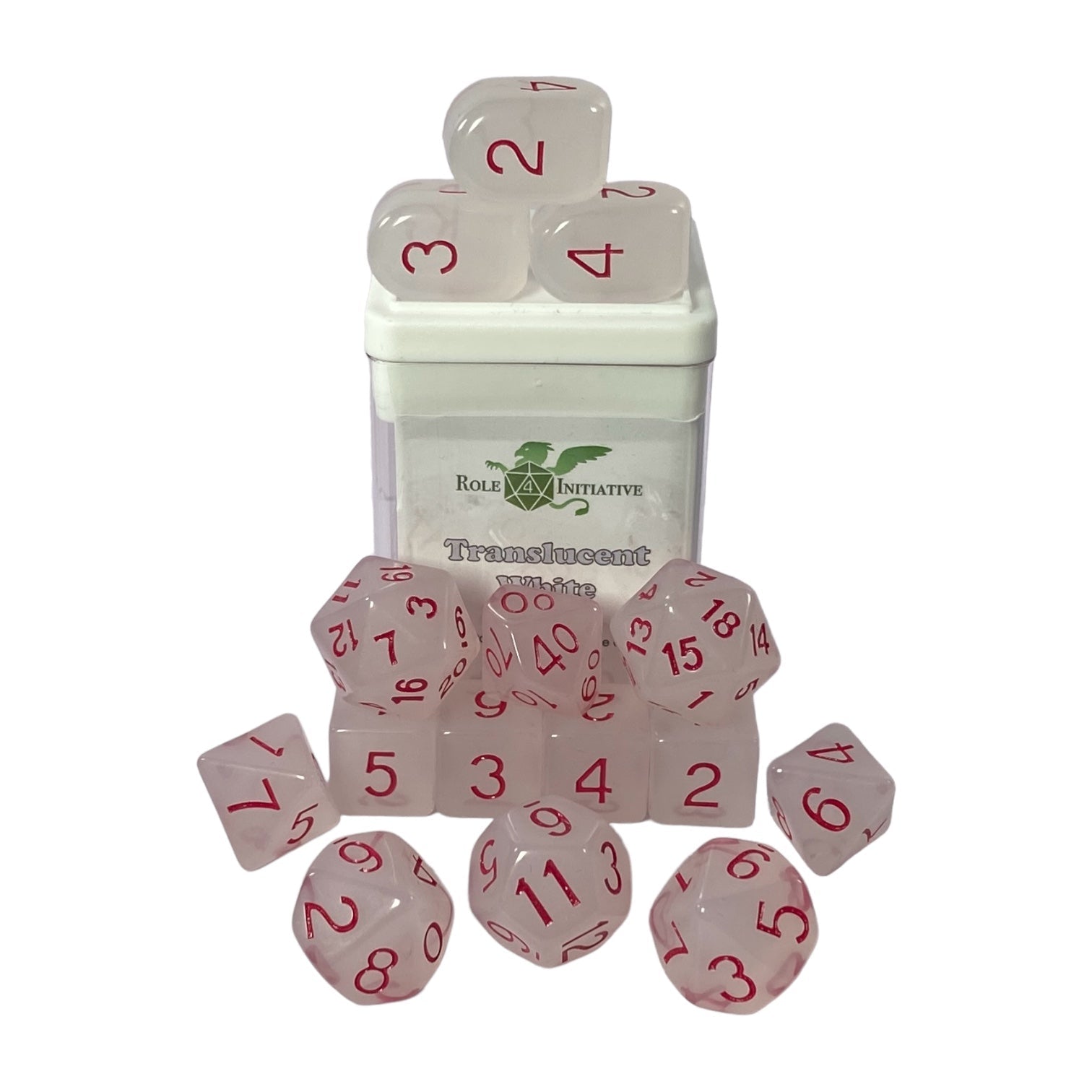 Translucent White w/ Rose Ink - Set of 15 Dice